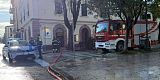 Immediato l´intervento degli agenti della polizia locale di Alghero e dei vigili del fuoco per mettere in sicurezza la strada: circolazione veicolare chiusa sulla via XX Settembre. Fiamme dall'impianto frenante: panico tra gli abitanti: immagini