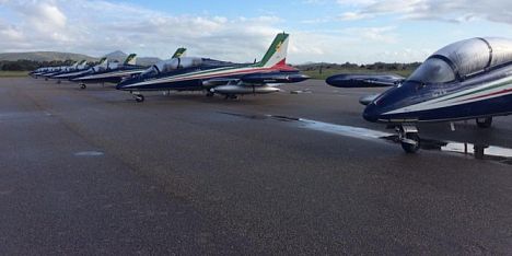 ALGUER – Una fermada tècnica per les fletxes tricolors. Diumenge 1° de maig set vehículs són passats a l’Alguer i se són fermats a l’aeroport militar i partiran avui vers Rivolto. Los pilots arriben de una manifestació en Marocco.