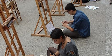 SÀSSER – La preparació demana un gran empenyo i dedició i una bone tècnica. Dissabte 1° de santuaïni-octubre en Plaça Azuni, los estudents del Liceu Artístic de Sàsser han treballat a damunt de una obra de Michelangelo amprant una tècnica antiga que el mestre ha utilitzat per realitzar la Capella Sistina.