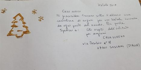 Casa Serena, encara una volta, promou la valorització de una bella tradició i difon aquest missatge: "Benvolgut amic, estimada amiga, volgueriva trobar sota l’arbre un bitllet de auguris per un Nadal junts, de cada part del món ». Lo convit és lo d’enviar per posta a Casa Serena, Via Pasubio 18, 07100-Sassari, un bitllet del lloc on viviu, amb els millors desitjos pels hòspites de la residència per ancians.