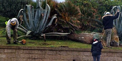 L'ALGUER - Tots los espais verds de la ciutat son objecte dels treballs de manutenció ordinària. Treballadors al treball a la plaça Balaguer.
