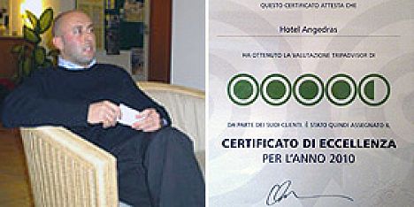 «Del principi havem comprés la importància de l'ús d'Internet al nostre treball i de l'efecte positiu que han les recensions sobre les reserves enviades al nostre hotel. Lo certificat d'excel·lència 2010 que havem recivit és per a nosaltres un motiu de gran satisfacció, i nos espenyi a continuar per aqueix carrer. Volem rengraciar los nostres clients que cada any venen a trobar-nos» així han dit Marco i Francesco Coronzu, propietaris de l’Hotel Angedras, que és també un dels pocs hotels que resten obertes a l'Alguer tot l'any.