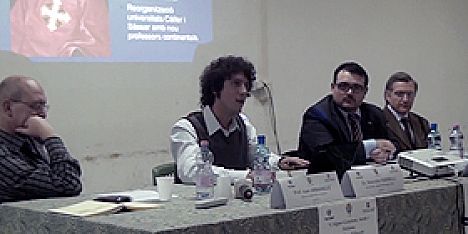 Una part de la relació de Marcello Farinelli, alguerès, estudiós de història a la l’Universitat Pompeu Fabra de Barcelona, durant la conferència organitzada al Liceu Científic per promoure la festa de “sa Die de sa Sardigna” a la ciutat de l'Alguer
