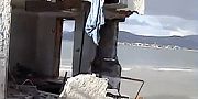 Il locale era stato danneggiato dalle mareggiate nel gennaio del 2010 e rappresentava un costante pericolo per l´incolumità delle persone. La demolizione ripresa dalle telecamere e visibile nel sistema velocizzato