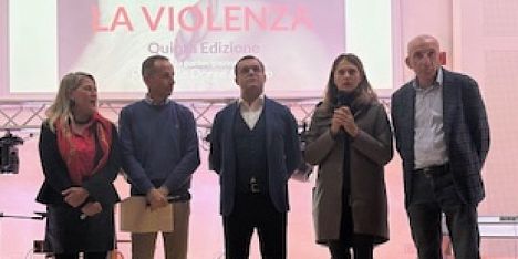 Auditorium gremito all’IPIA Alghero nella mattina del 25 novembre 2025, in occasione della quinta edizione dell’evento Insieme contro la violenza