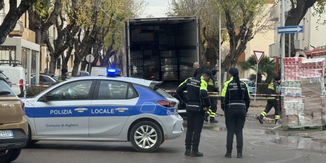ALGHERO - In fiamme l'impianto frenante del camion diretto alla Conad di Via XX Settembre ad Alghero. Questa mattina intorno alle 7.45, la squadra del distaccamento di Alghero è intervenuta per un incendio del mezzo pesante: mentre era ancora in movimento,, ha iniziato a prendere fuoco dall’impianto frenante del rimorchio. Il rapido intervento dei pompieri ha fatto sì che le fiamme non si propagassero per tutto il camion. Momenti di panico tra gli abitanti, per lo scoppio dei pneumatici, andando ad inclinare il rimorchio con il peso del carico. Non si registrano feriti. Sul posto gli agenti della polizia locale che hanno chiuso la circolazione veicolare.