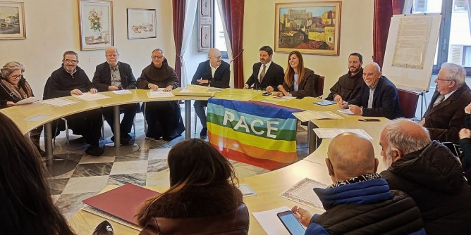SASSARI - La decisione è arrivata dopo un percorso nato dal basso e portato avanti in maniera corale da associazioni laiche e religiose quali “Intrecci Culturali”, Laudati SI”, le ACLI e il comitato “Fermiamo la guerra” . Un percorso fatto di incontri e raccolta firme culminato oggi a Sassari alla presenza della presidente ANCI Daniela Falconi e del sindaco di Sassari Giuseppe Mascia unitamente a esponenti del mondo dell’associazionismo.