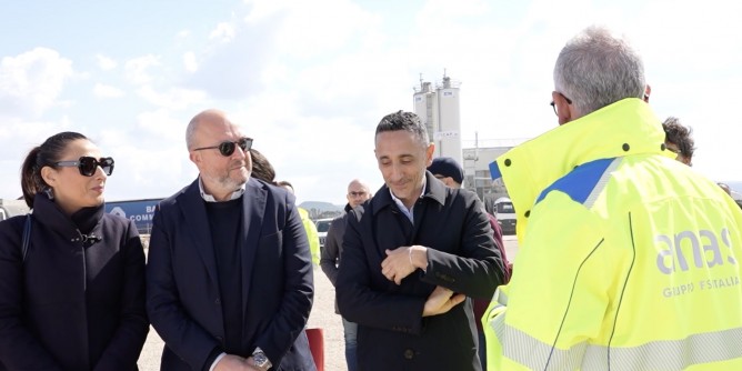 Sopralluogo nel cantiere di completamento della Sassari-Alghero-aeroporto di Fertilia del presidente dell’ottava commissione Ambiente, Territorio e Lavori pubblici della Camera, Mauro Rotelli, con assessore regionale dei Lavori pubblici