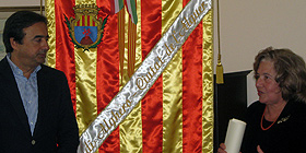 nella foto). Il simbolo della città è stato donato all'Amministrazione Civica dalla sarta algherese Angela Serra e dal nipote Stefano Serusi, diplomato all'Accademia delle Belle Arti di Sassari. Il gonfalone, che sostituisce il precedente in uso da oltre un quarto di secolo, recante lo stemma sabaudo, ha fatto il suo debutto ufficiale il