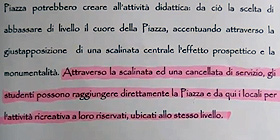 nella foto in basso) un documento preliminare (uno stralcio di una relazione allegata al primo datato progetto) in cui si evince quanto a loro promesso: uno spazio ricreativo nella futura Piazza dei Mercati (dal Sacro Cuore precisano 300mq).