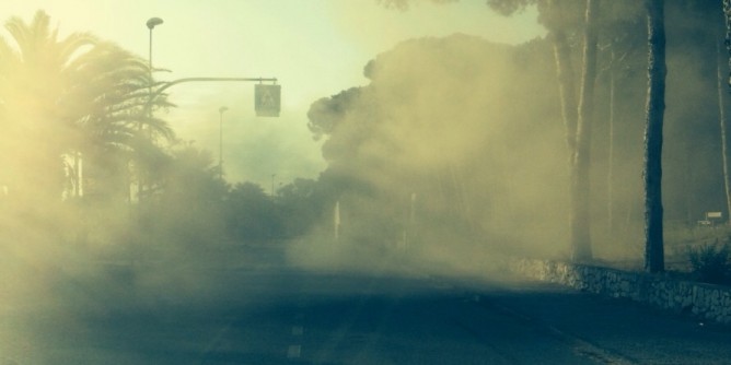 Nessun principio di incendio, il fumo che ha invaso stamane la strada che costeggia la pineta di Maria Pia ad Alghero era solo quello che usciva dal mezzo per lo spazzamento automatico: lo scatto di un lettore in redazione